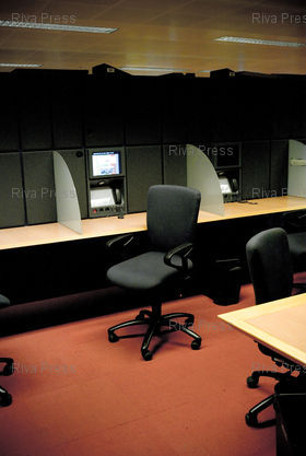 Légende : 03/05/2009 - Strasbourg, FRANCE - Portes Ouvertes au Parlement Europeen pour sensibiliser la population aux elections europeennes de juin 2009. Salle de presse.
