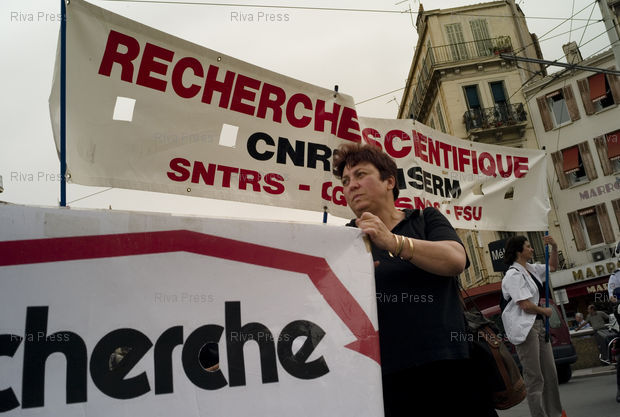 Légende : 27/05/2008 - Marseille, FRANCE - Chercheurs et enseignants-chercheurs du CNRS ont manifeste a Marseille contre la proposition de reorganisation de la Recherche par le Gouvernement.