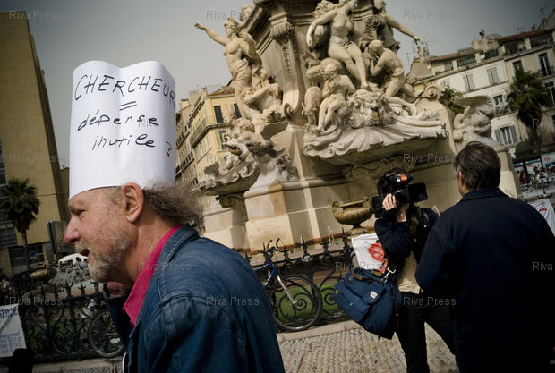 Légende : 27/05/2008 - Marseille, FRANCE - Chercheurs et enseignants-chercheurs du CNRS ont manifeste a Marseille contre la proposition de reorganisation de la Recherche par le Gouvernement.