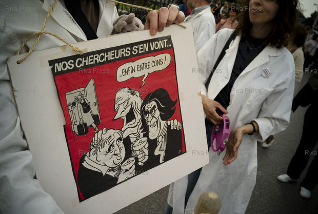 Légende : 27/05/2008 - Marseille, FRANCE - Chercheurs et enseignants-chercheurs du CNRS ont manifeste a Marseille contre la proposition de reorganisation de la Recherche par le Gouvernement.